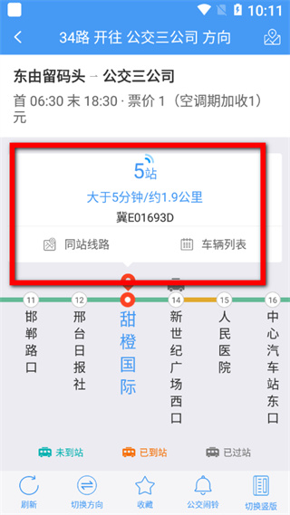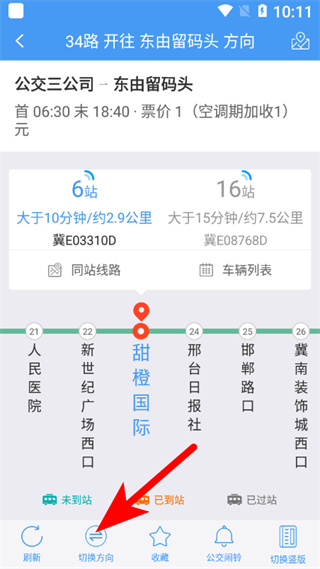 3、在公交线路详情页面,点击切换方向选项,查看不同行驶方向的公交实时信息。