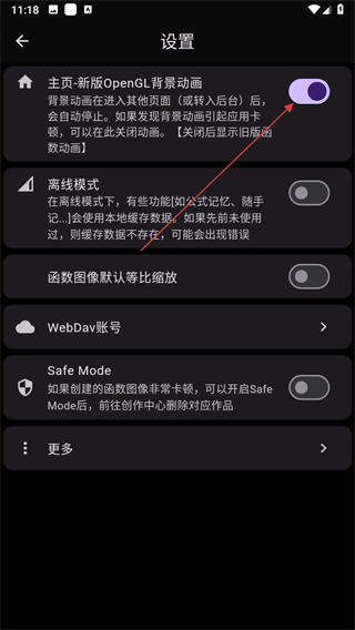 3、在设置页面,开启或关闭背景动画右侧的开关。
