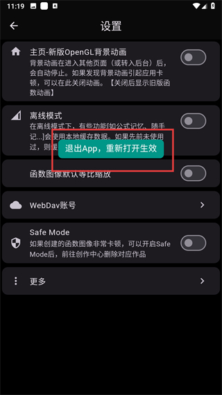 4、点击关闭之后,需按照提示退出APP重新打开生效。