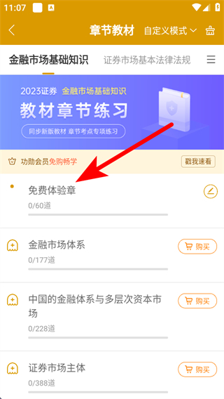 2、在章节教材页选择免费体验章,进入练习引导环节,准备开始练习。