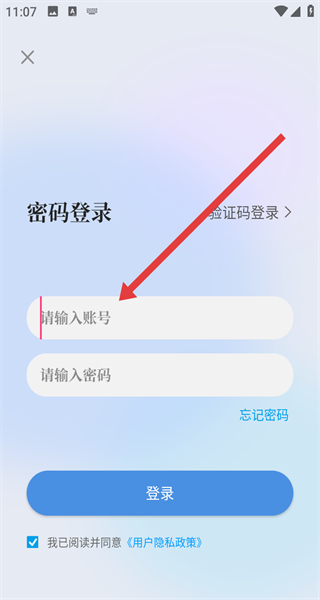 4、在登录界面,输入账号和密码,勾选我已阅读并同意选项后,点击登录按钮,完成账号登录操作。