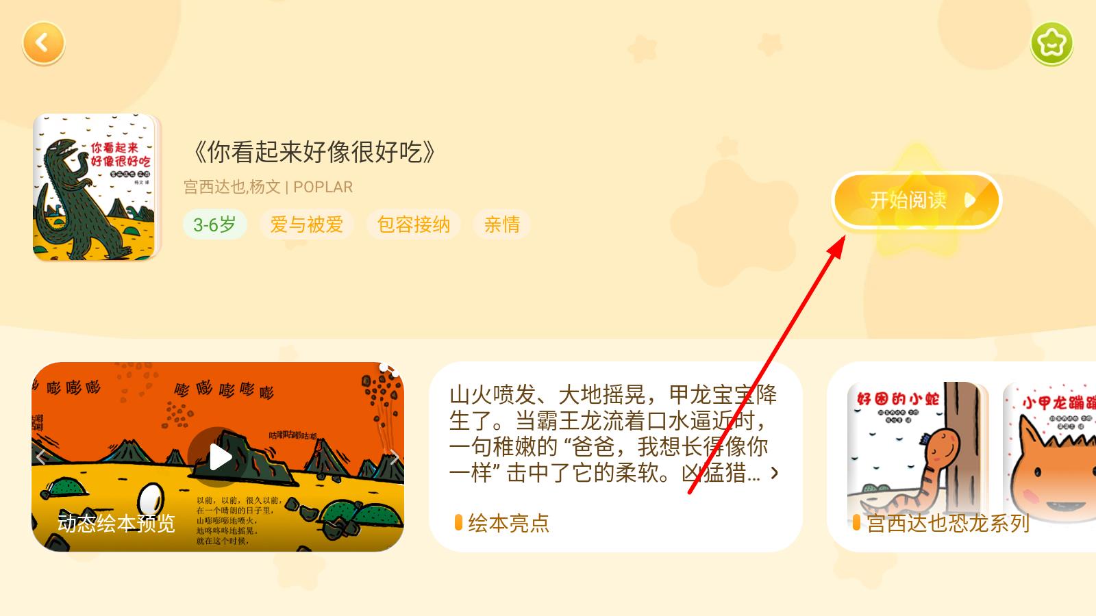 4、进入书籍详情页面后,点击开始阅读按钮,即可开始阅读该绘本。