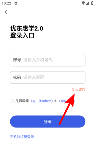1、打开优东惠学APP,点击立即登录,进入优东惠学登录入口页面。