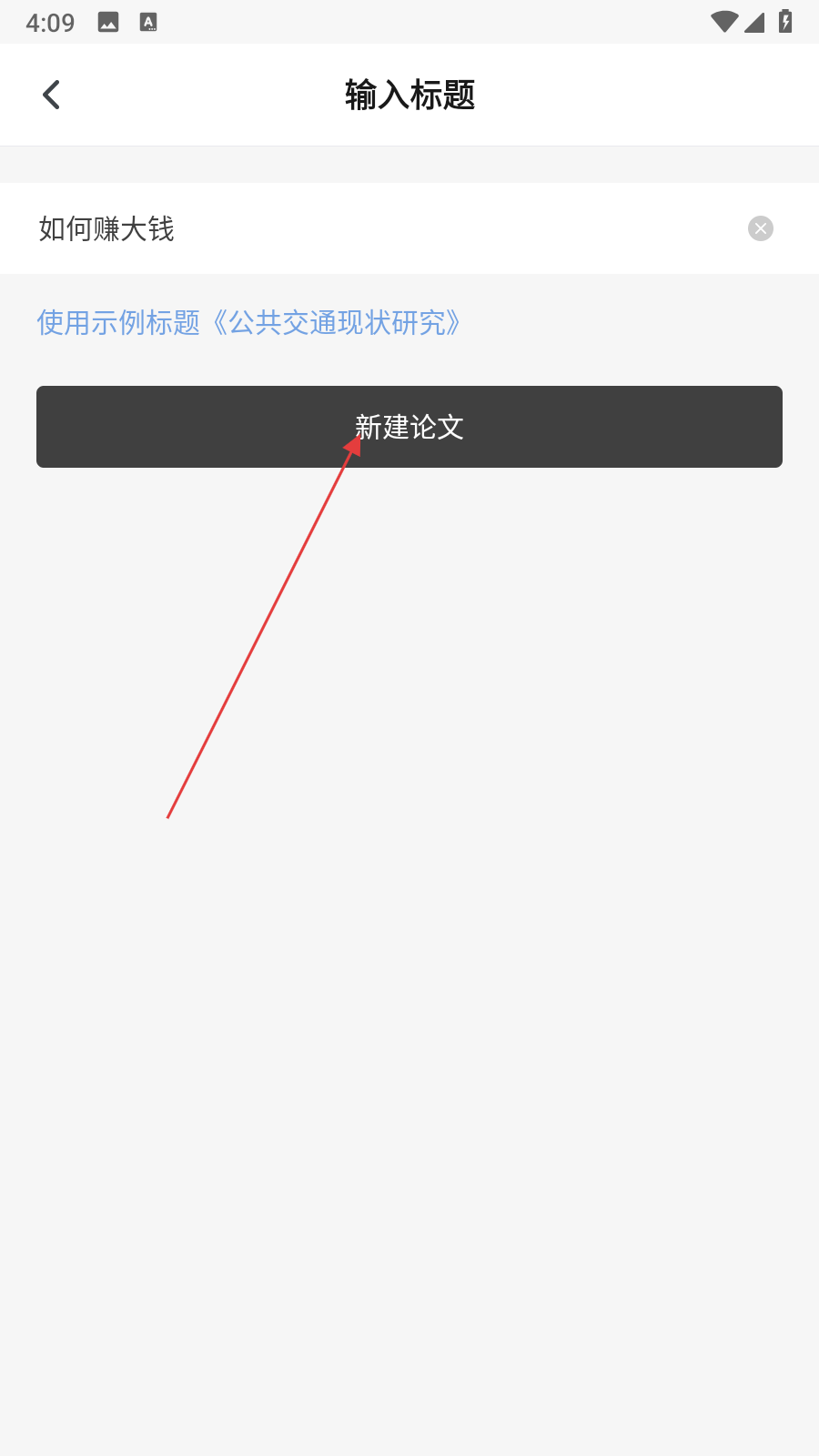 2、进入输入标题页面,在输入框中填写论文标题,然后点击新建论文按钮。