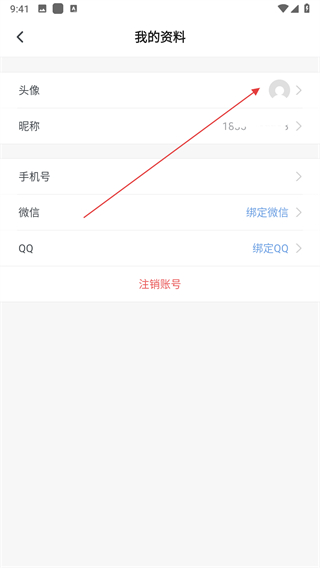 2、进入个人页面后点击头像区域,进入我的资料页面。