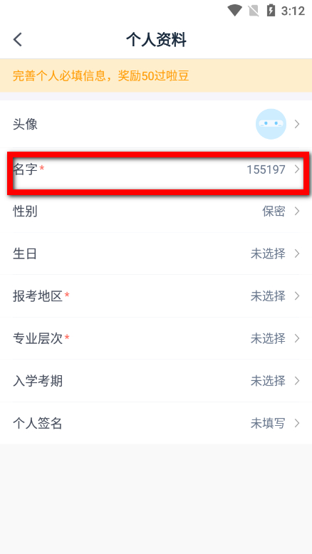 4、在个人资料编辑页面,点击名字选项,输入想要修改的名字后保存,即可完成名字修改。