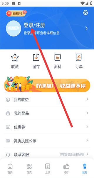 2、在个人中心界面,点击登录/注册区域,进入登录注册界面。