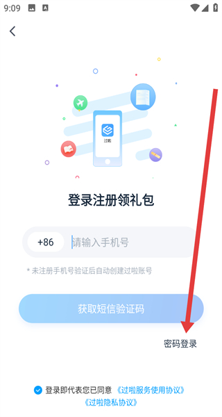 3、在登录注册界面,点击密码登录选项,切换到密码登录模式。
