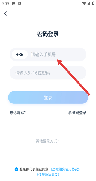 4、输入手机号码和6-16位密码后,点击登录按钮,完成密码登录操作。