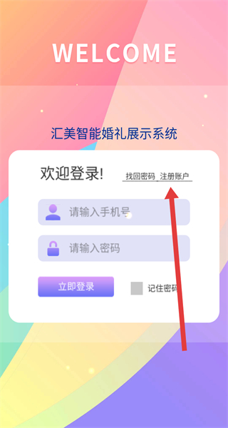 1、点击同意按钮,同意汇美婚礼软件的服务协议和隐私政策,进入登录界面。