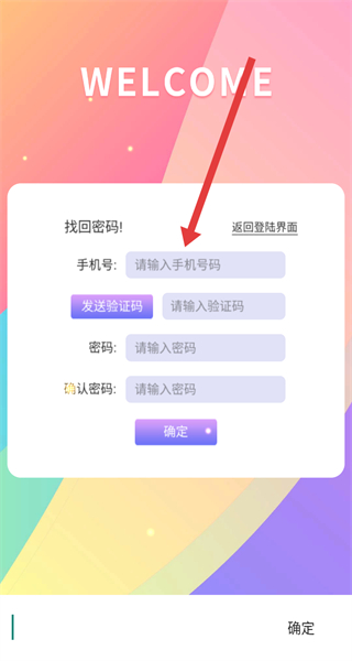 3、在找回密码界面,填写对应信息后,设置新密码并确认密码后,点击确定按钮,完成密码找回操作。