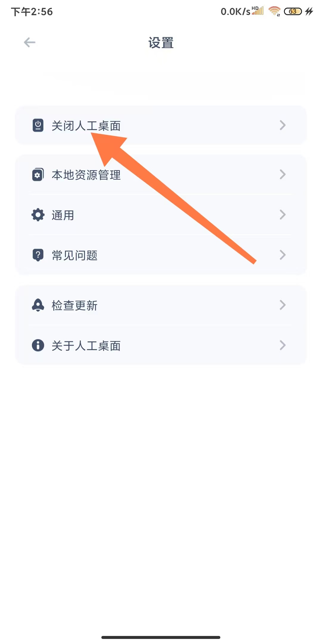 3、在设置页面,点击关闭人工桌面选项,弹出确认弹窗。