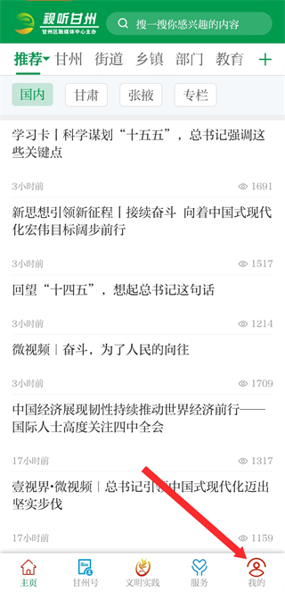 1、打开视听甘州app,点击底部我的按钮,进入个人的页面。