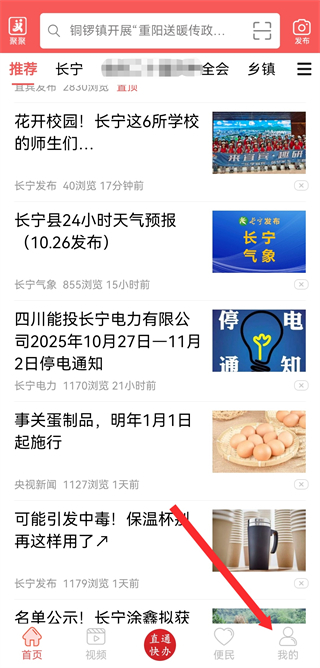 1、打开掌上长宁APP首页,点击底部我的,进入个人页面。