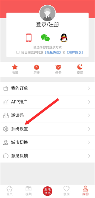 2、在个人的页面中,点击系统设置,进入系统设置的界面。