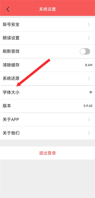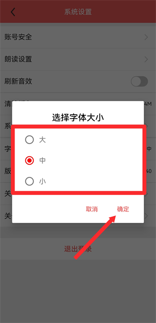 3、在系统设置界面里,点击字体大小,弹出选择字体大小的选项框。