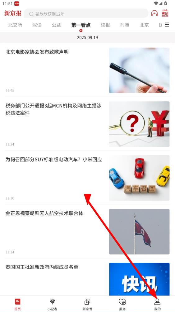 1、打开新京报APP,点击右下角我的,进入个人页面。