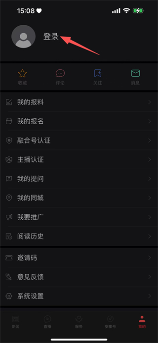 2、在我的页面,点击登录,进入登录选择页面。