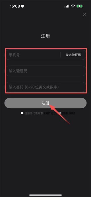 4、输入手机号验证码,再设置密码点击注册,完成账号注册操作。