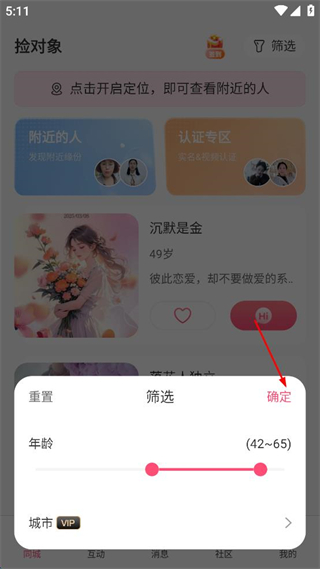 3、注册完成后进入首页,点击右上角筛选,进入筛选设置界面。
