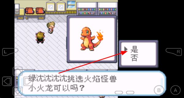 3、选择界面领取小火龙作为初始精灵,开启口袋妖怪的养成和战斗之旅,丰富游戏的精灵收集玩法。