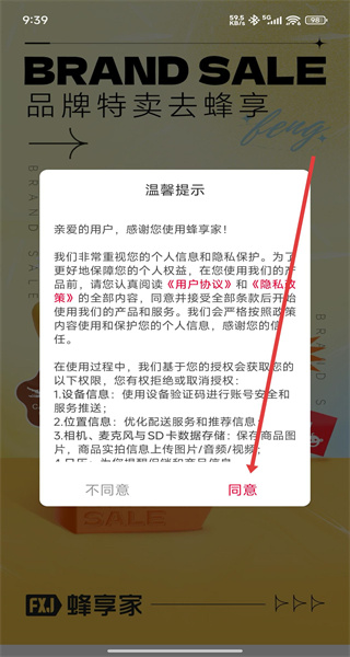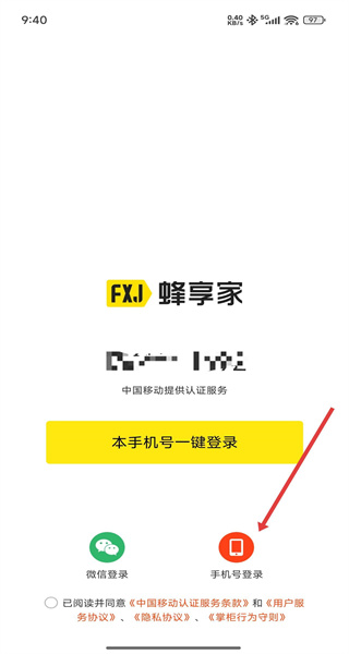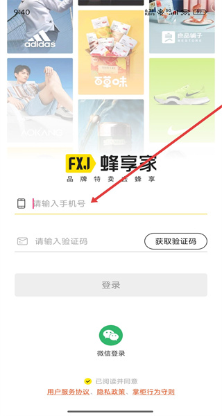 1、点击“温馨提示”弹窗的“同意”,进入蜂享家登录选择页面。