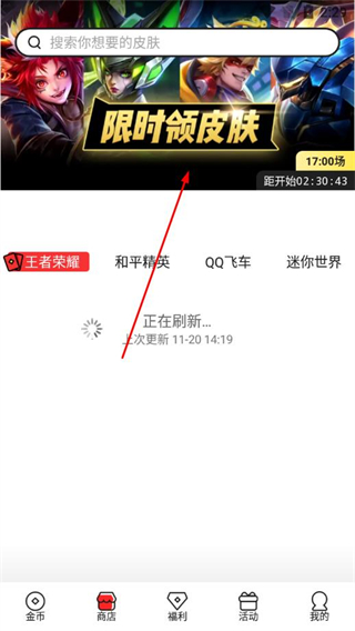 2、在商店页面点击限时领皮肤活动入口,进入皮肤限时抢界面。