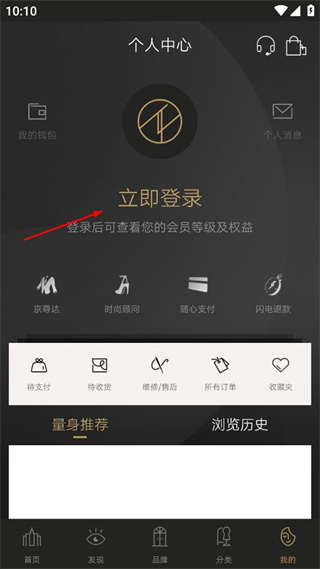 2、在个人中心页面找到立即登录按钮,点击该按钮进入账号登录界面。