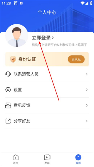 2、在个人中心页面可查看登录状态,点击立即登录。
