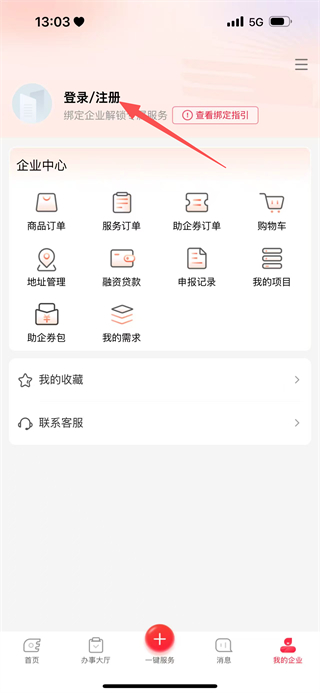 1、在APP首页,点击底部我的企业,进入个人中心页面。