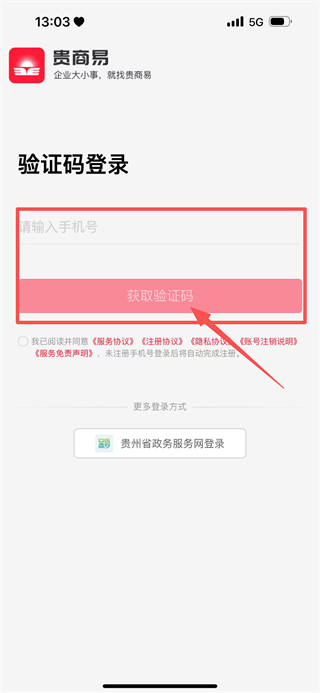 3、在验证码登录页面,输入手机号后点击获取验证码。