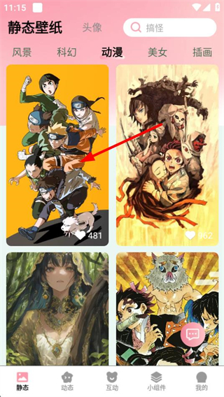 1、在静态壁纸页面,点击动漫分类标签,进入动漫类壁纸列表页面。