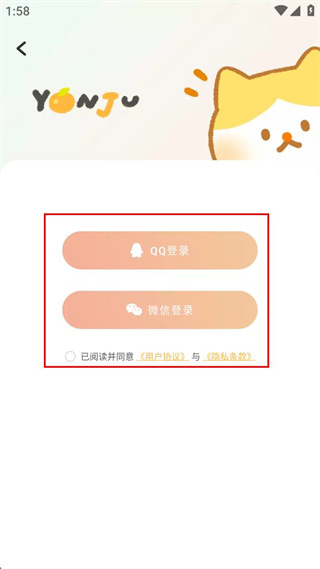 3、选择QQ登录或微信登录,勾选已阅读并同意相关协议后完成登录。