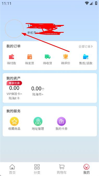 1、在陆海商城首页点击底部我的,进入个人页面。