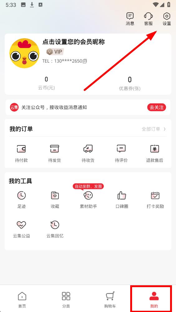 云集app怎么使用手机号登录
