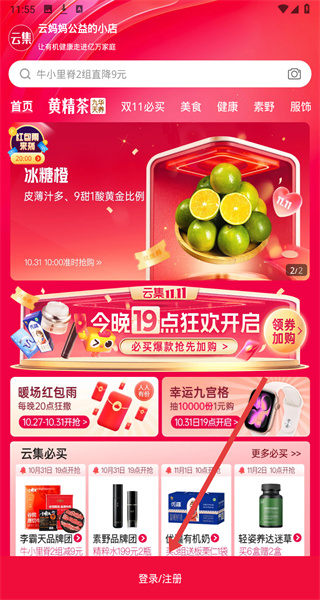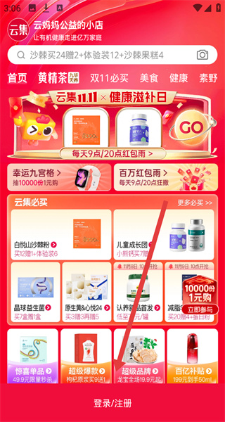 1、在进入到云集首页中,可以点击下方登录/注册按钮,准备展开登录操作。