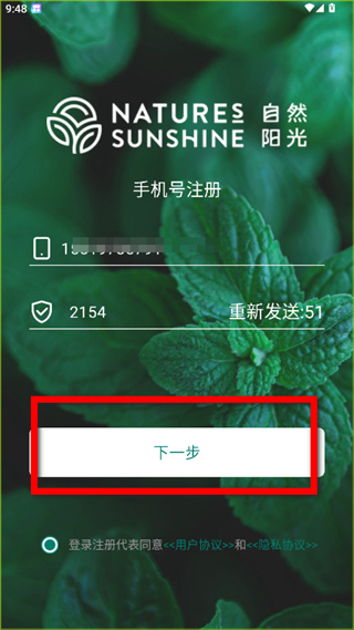 3、在输入验证码后,点击下一步按钮,进入后续注册流程。