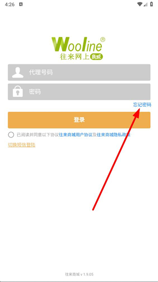 1、在往来商城登录界面,点击切换密码登陆,进入密码登录界面。