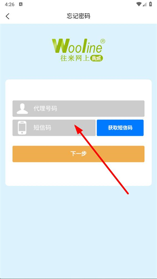 3、在忘记密码界面,输入代理号码,点击获取短信码,点击下一步,按照提示重置登录密码即可。