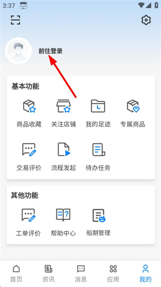 2、在个人页面,点击前往登录区域,进入登录页面。