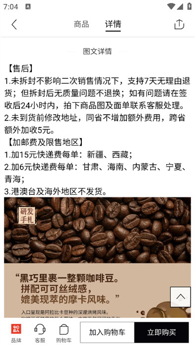 4、进入商品详情页面后,可点击加入购物车或立即购买,完成商品选择流程。