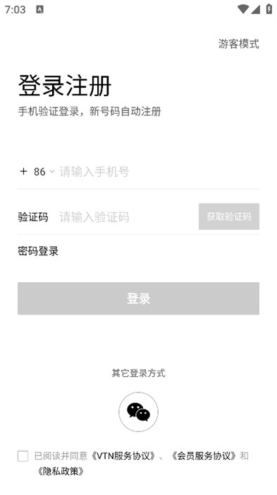 2、用户们可以输入自己的手机号和验证码去进行账号登录的操作;