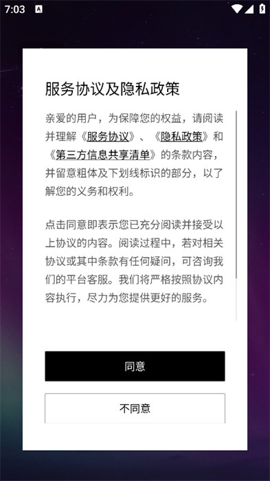 1、在打开App后,可以通过点击弹窗中的同意按钮,进入使用。