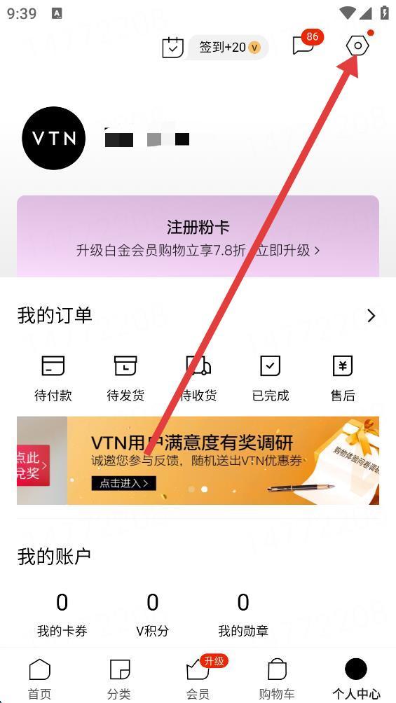 2、在个人中心页面右上角,点击设置图标,进入设置界面。