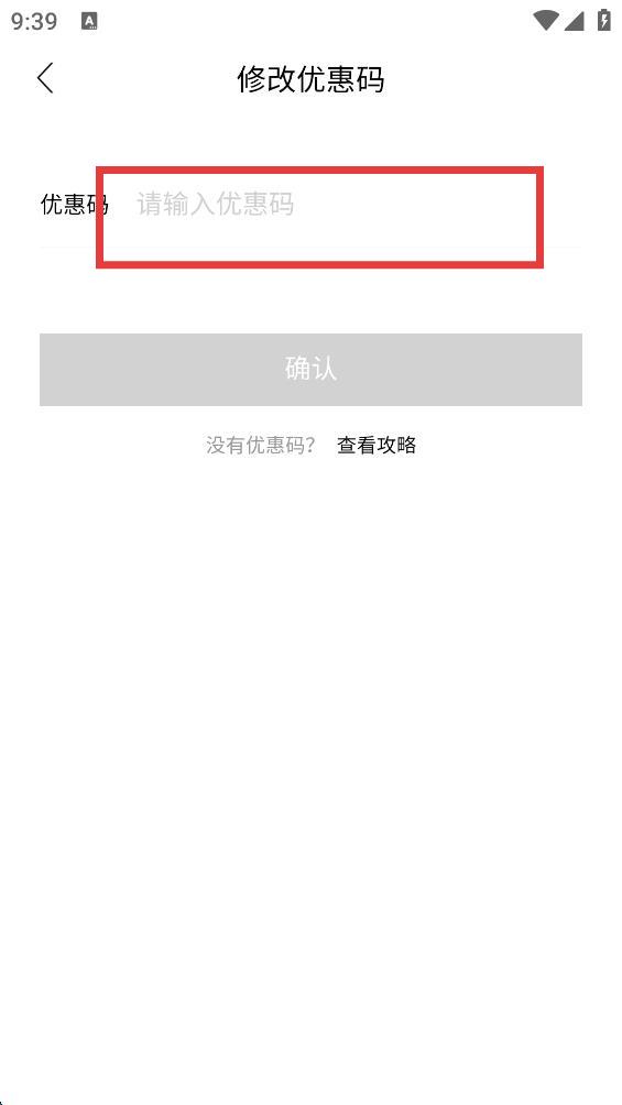 4、进入修改优惠码页面后,点击输入框即可输入优惠码。