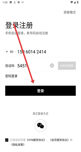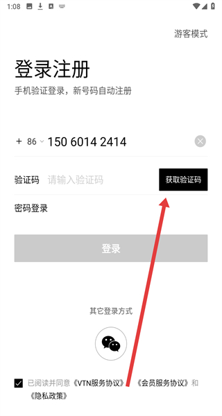 4、在获取到验证码并填写后,可以点击登录按钮,完成注册操作。