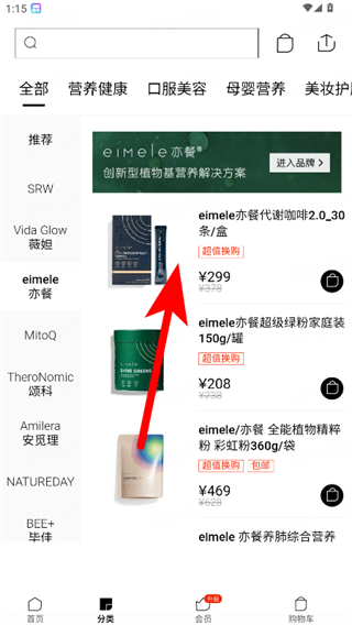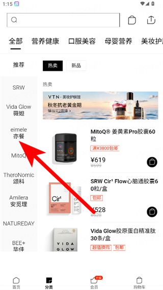 2、在商品分类页面,选择要查看的品牌,如亦餐。