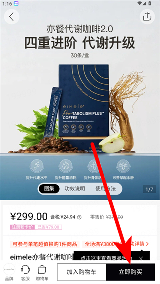 3、在品牌商品列表页面,选择要购买的商品,如亦餐代谢咖啡2.0。