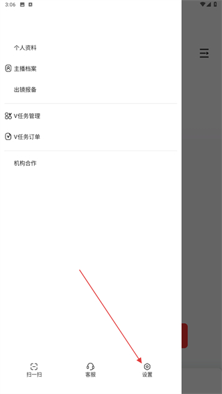 2、在左侧弹出的菜单栏中,点击下方设置的按钮。