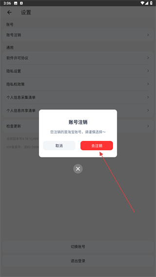 4、当页面弹出温馨提示后,点击去注销的按钮即可。
